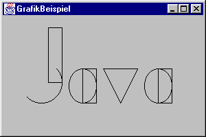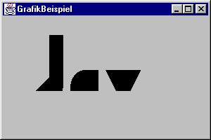 Das nachfolgende Beispiel verwendet die Methoden fillRect, fillPolygon, fillOval und fillArc, um einen stilisierten »Java«-Schriftzug anzuzeigen: