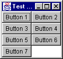 Das folgende Beispiel zeigt ein Fenster mit einem Gitter der Größe 4*2 Elemente, das ingesamt sieben Buttons anzeigt: