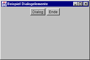 Die Beispielprogramme können dann dem übergebenen Panel innerhalb von customizeLayout einen beliebigen Layoutmanager zuordnen und eine beliebige Auswahl von Komponenten darauf plazieren. Der Ende-Button bleibt auf jeden Fall erhalten und kann zum Beenden des Dialogs verwendet werden: