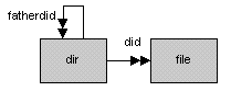 Beide Tabellen besitzen einen Primärschlüssel, der beim Anlegen eines neuen Satzes vom Programm vergeben wird. Die Struktur von dir ist baumartig; im Feld fatherid wird ein Verweis auf das Verzeichnis gehalten, in dem das aktuelle Verzeichnis enthalten ist. Dessen Wert ist im Startverzeichnis per Definition 0. Über den Fremdschlüssel did zeigt jeder Datensatz aus der file-Tabelle an, zu welchem Verzeichnis er gehört. Die Tabellen stehen demnach in einer 1:n-Beziehung zueinander. Auch die Tabelle dir steht in einer 1:n-Beziehung zu sich selbst. Abbildung 42.1 zeigt ein vereinfachtes E/R-Diagramm des Tabellendesigns.