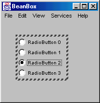 Abbildung 44.7 zeigt ein ButtonPanel mit vier Radiobuttons in der Beanbox: